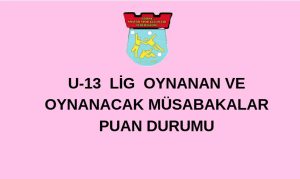 U 13 LİGİ B GRUBU OYNANACAK MÜSABAKALAR